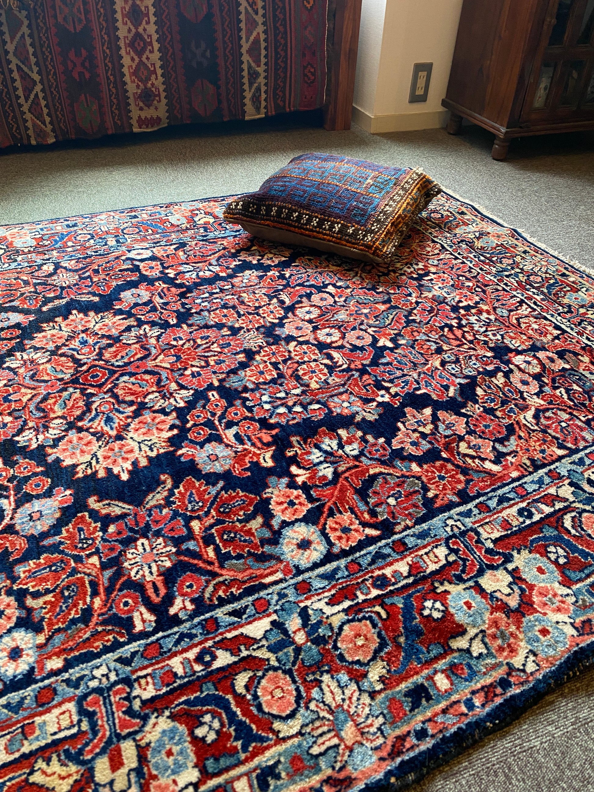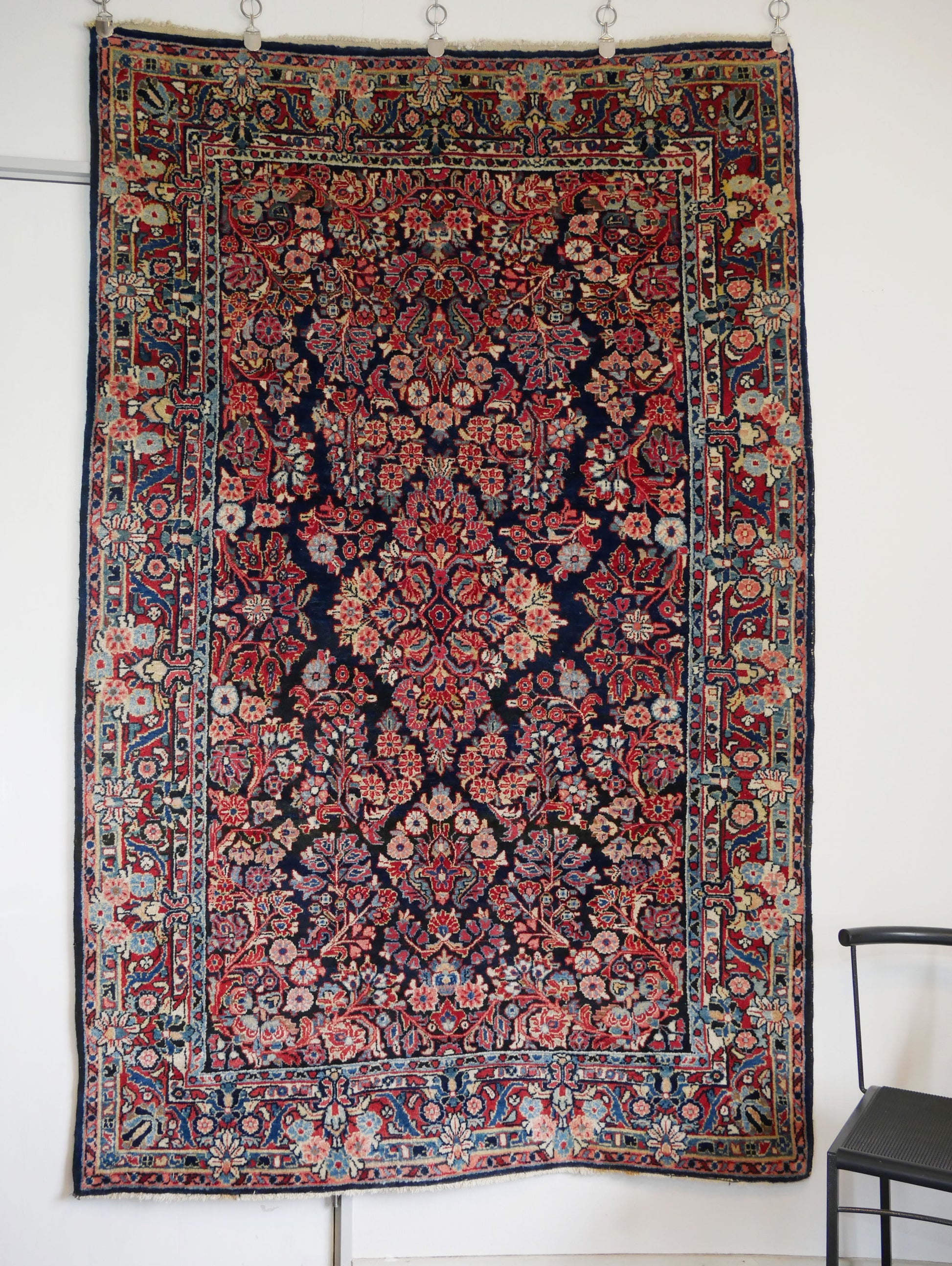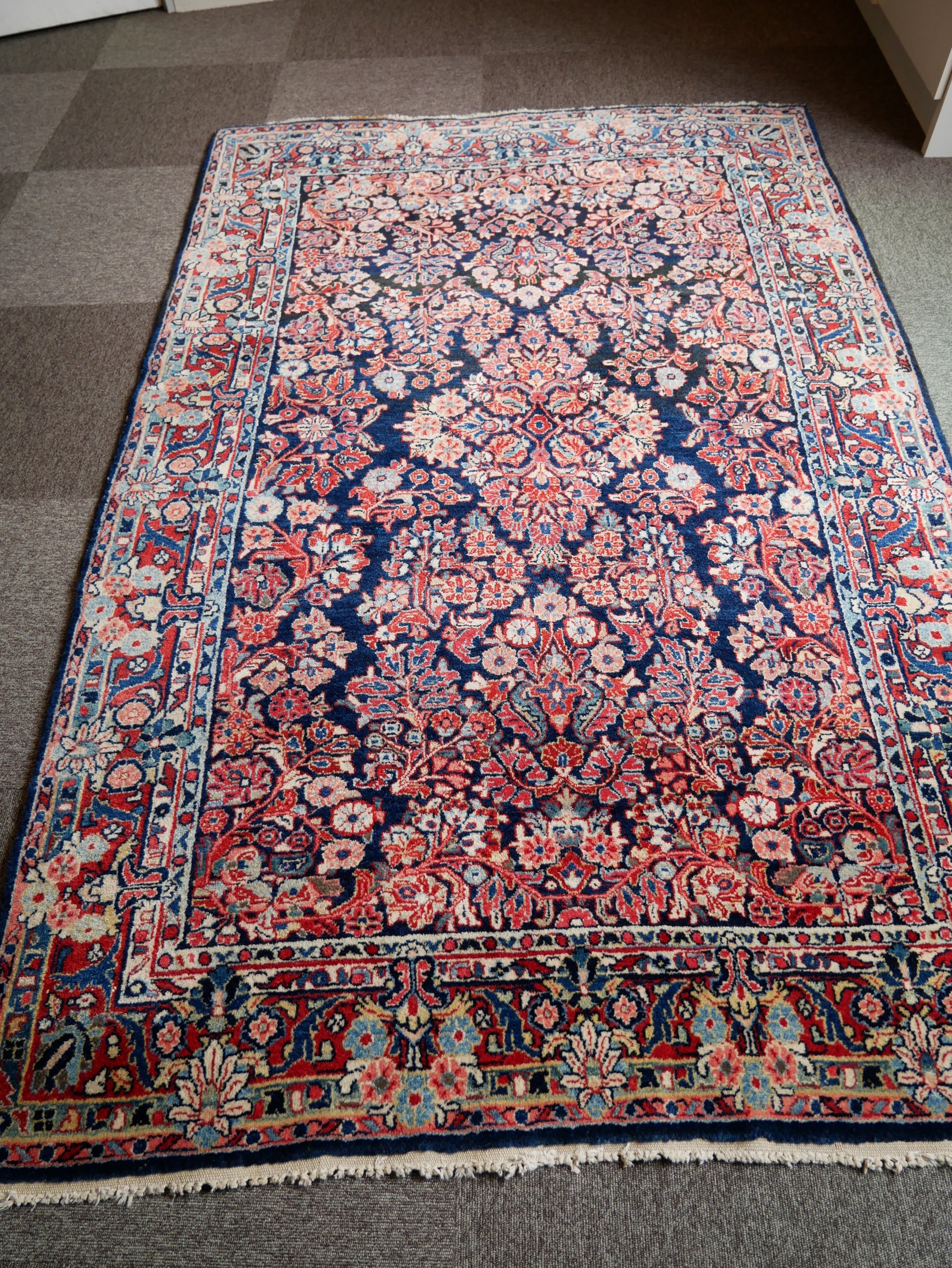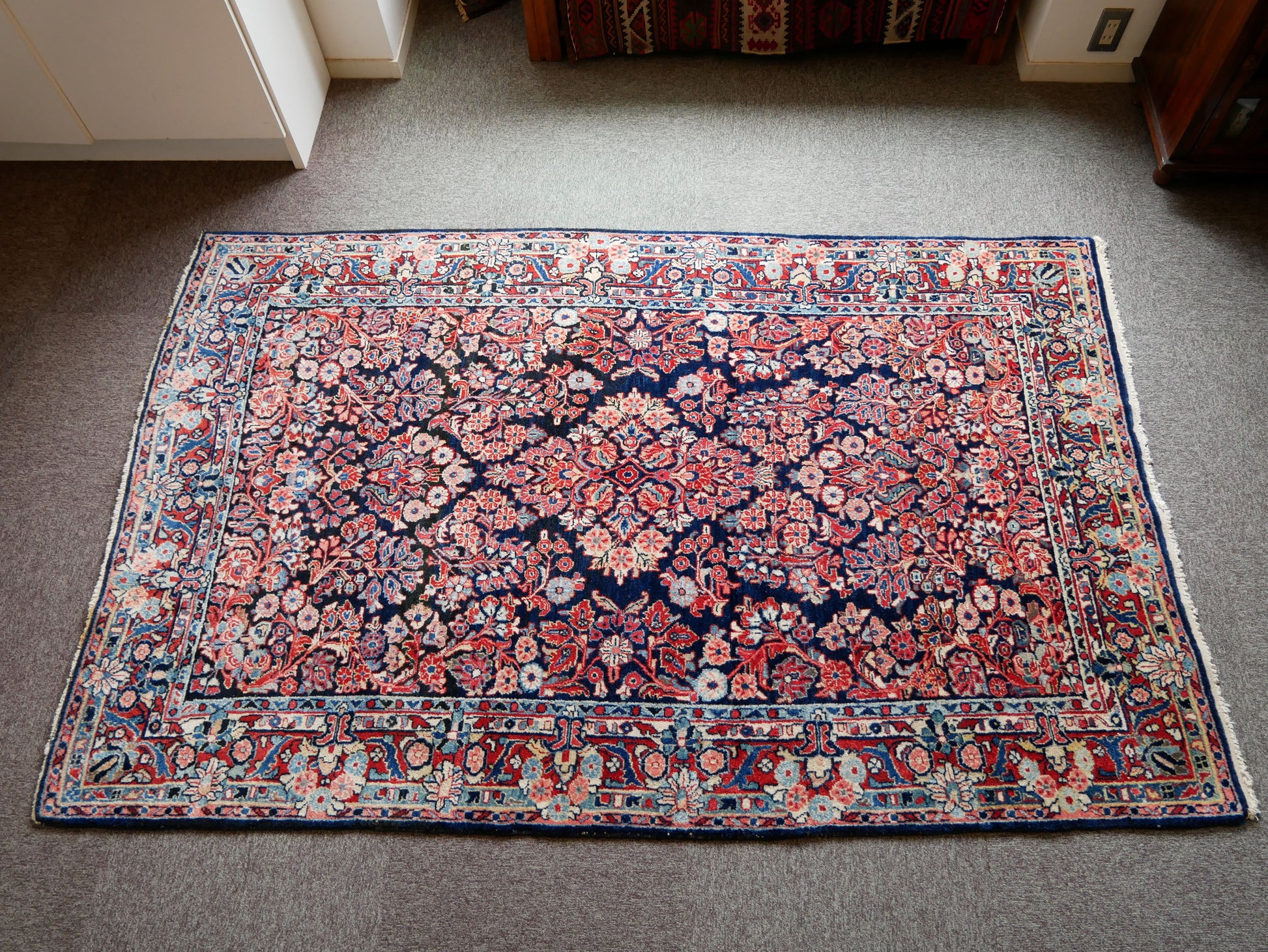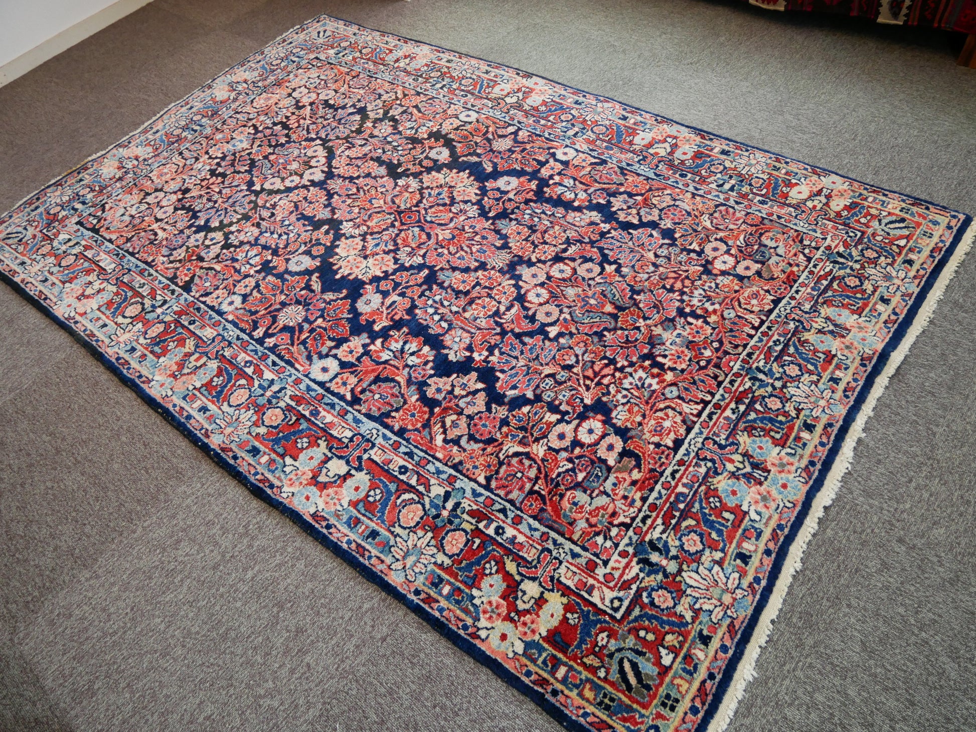前回のアメリカンサルークに似たデザインの美しいネイビーフィールドの絨毯です。