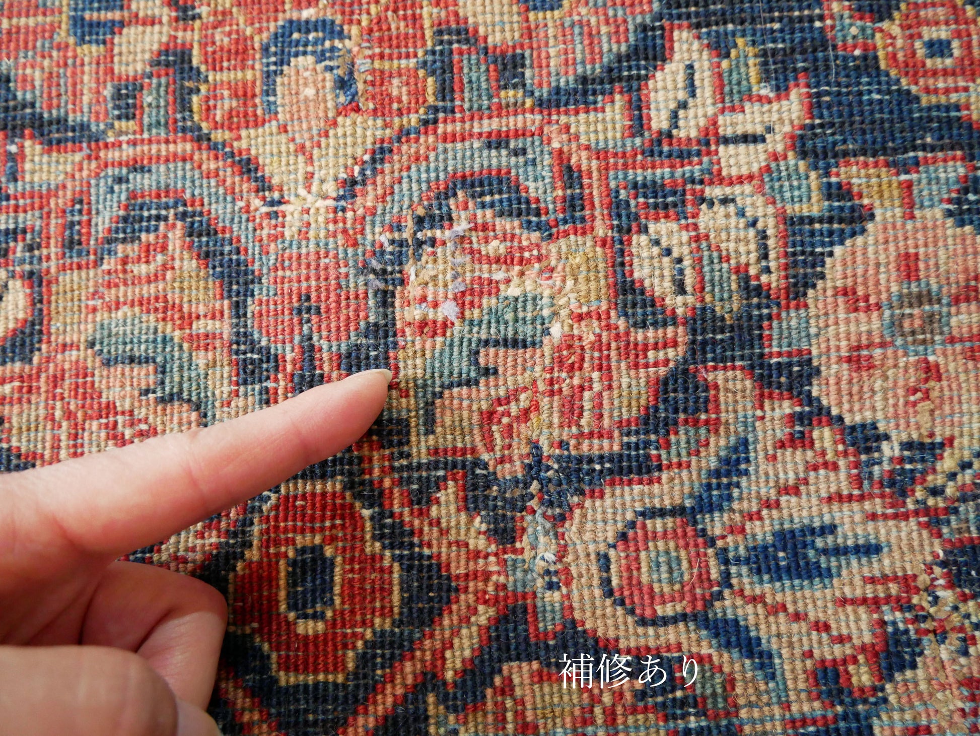古いものなのでその他にも完璧でない部分はありますが、まだまだ長く使っていただける絨毯です。
